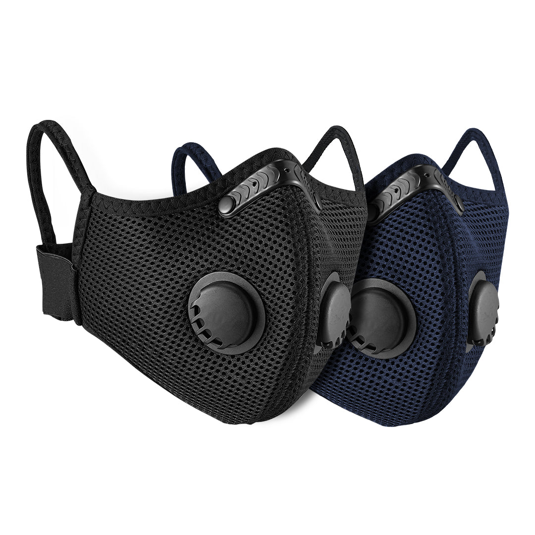 2 máscaras antipoeira BASE CAMP M Plus (PRETO + AZUL-AZUL ESCURO)